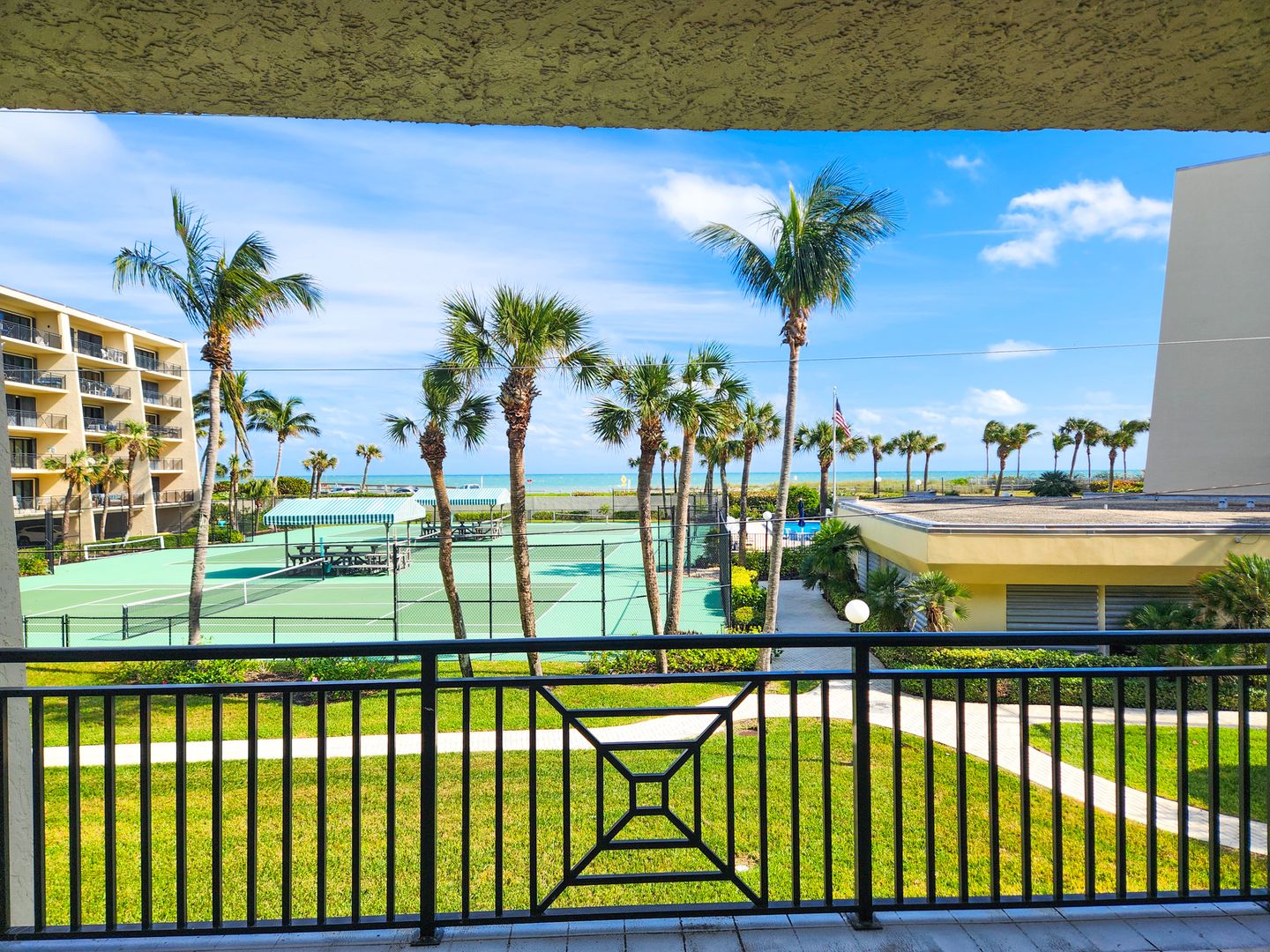 This stunning 2-bedroom, 2-bathroom condo in the desirable Racquet Club community offers an unbeatable combination of luxury, comfort, and convenience. With direct ocean views, you can enjoy breathtaking sunrises and the sound of waves from your spacious living area, which overlooks the sparkling pool and well-maintained tennis courts. The condo features the largest patio in the community, perfect for entertaining or relaxing while taking in the beautiful surroundings. Just a short walk from some of Vero Beach’s best restaurants, shopping, parks, and the iconic Vero Beach boardwalk.