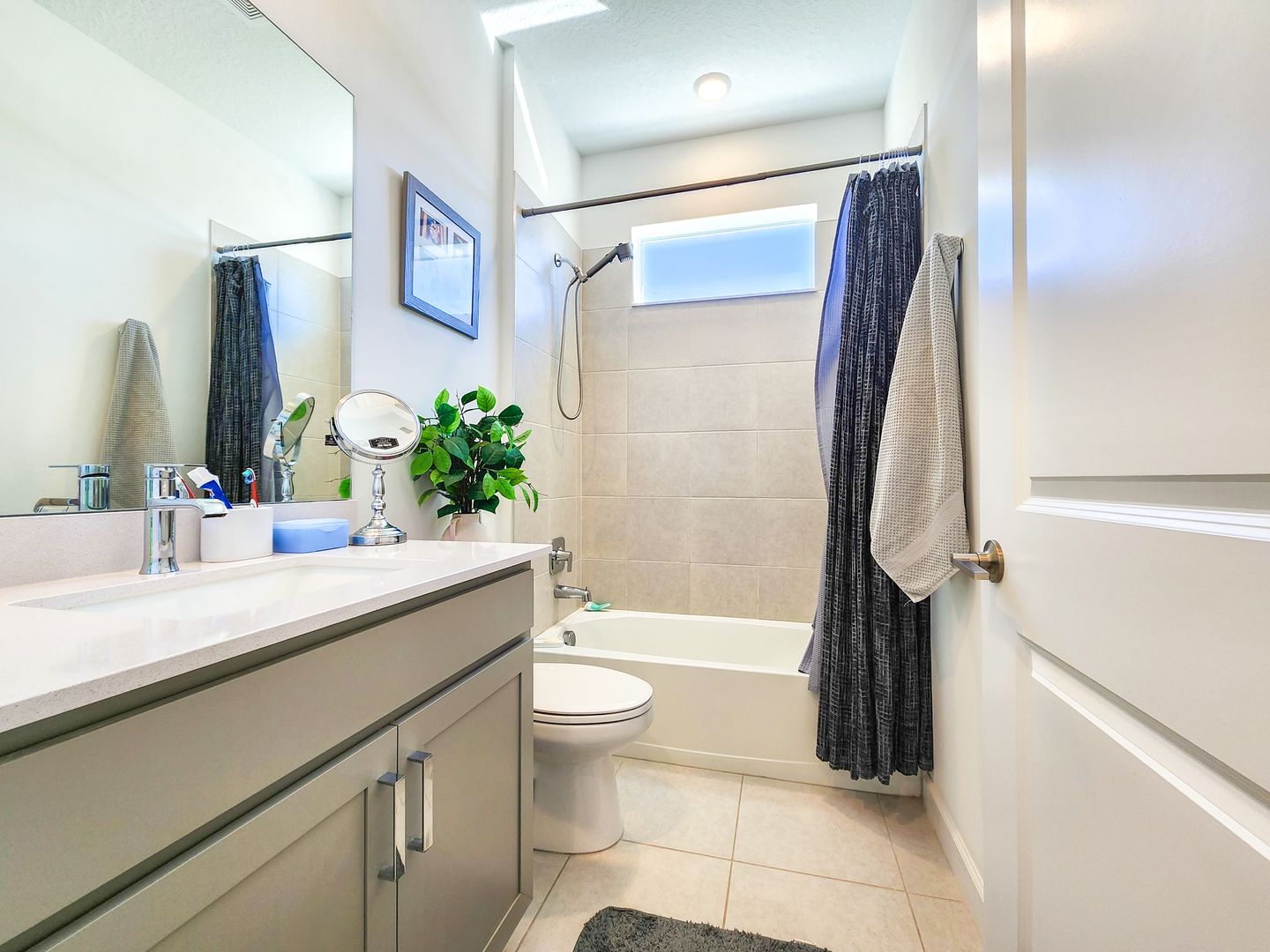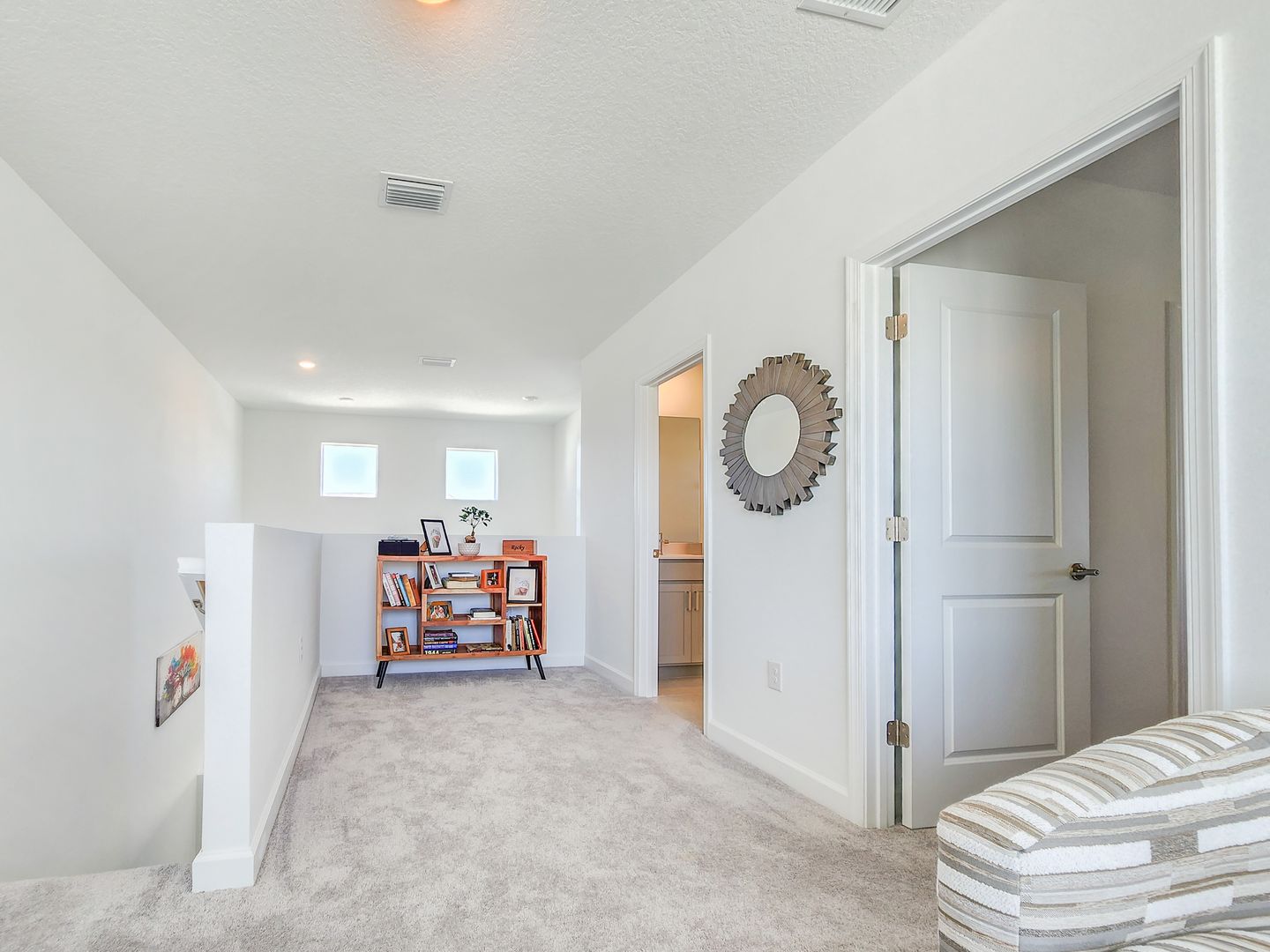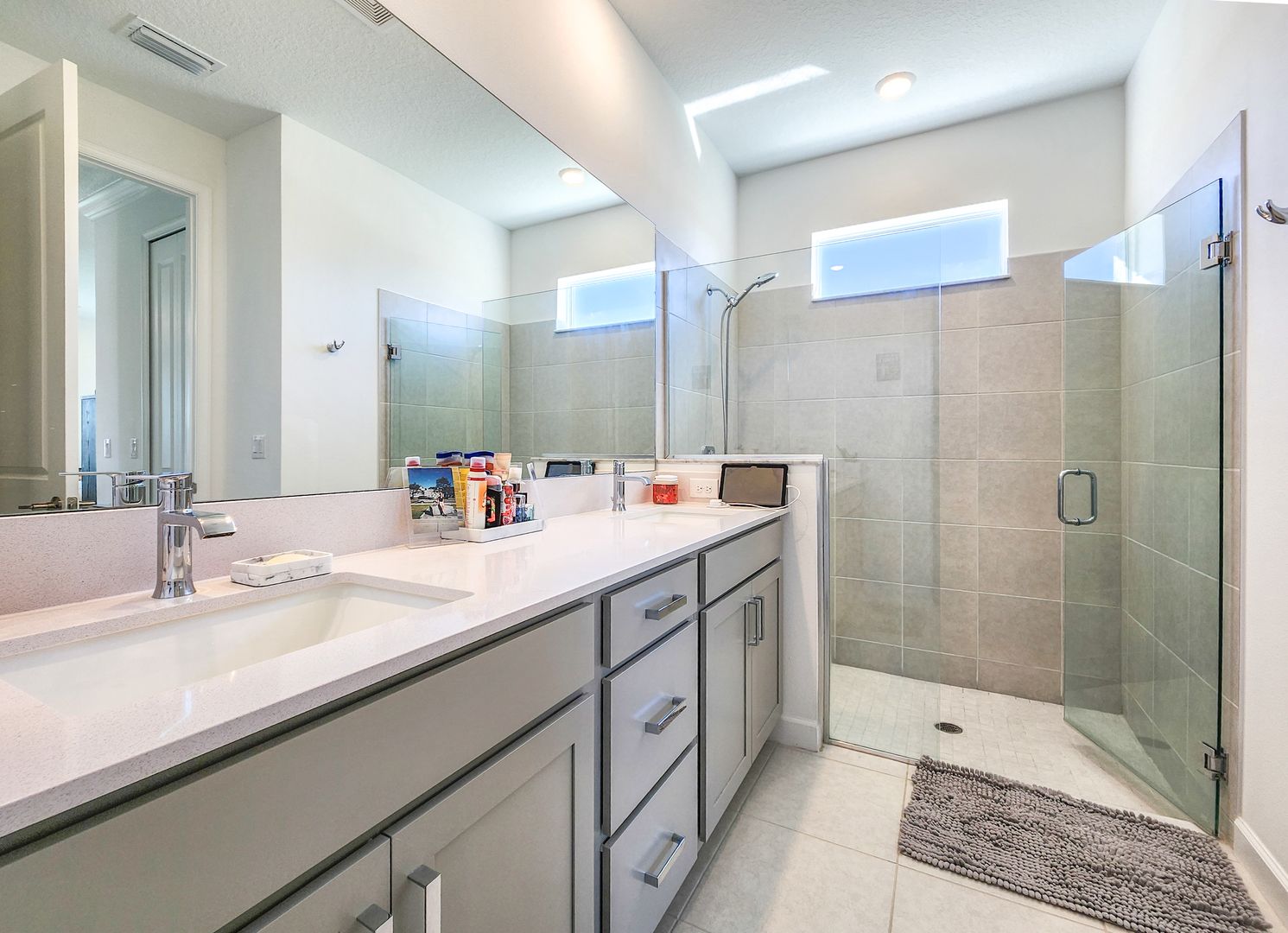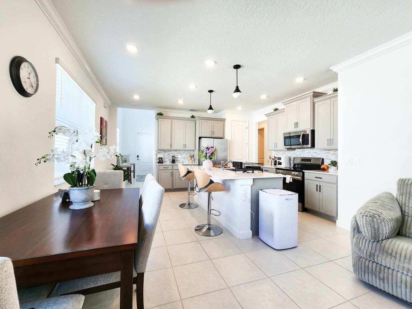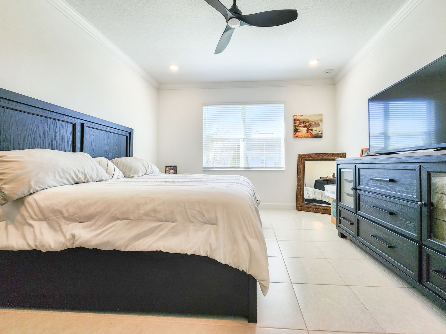 Welcome to Timbers at Everlands, Palm Bay's premier 55+ community, where modern design meets resort-style living. This beautifully designed two-story home sits on a spacious corner lot and offers a thoughtfully planned layout ideal for both everyday comfort and hosting guests. The second level features a private en-suite bedroom, full bath, and loft area; perfect for visitors, hobbies, or a quiet retreat. The main-level owner's suite is a relaxing sanctuary, complete with a walk-in shower, dual sinks, and a generous walk-in closet. At the heart of the home, the open-concept great room seamlessly connects the kitchen, dining area, and covered lanai, creating an inviting space for entertaining or unwinding. The kitchen showcases gray shaker-style cabinetry, a large center island, and modern finishes. Crown molding and window blinds add refined finishing touches throughout.